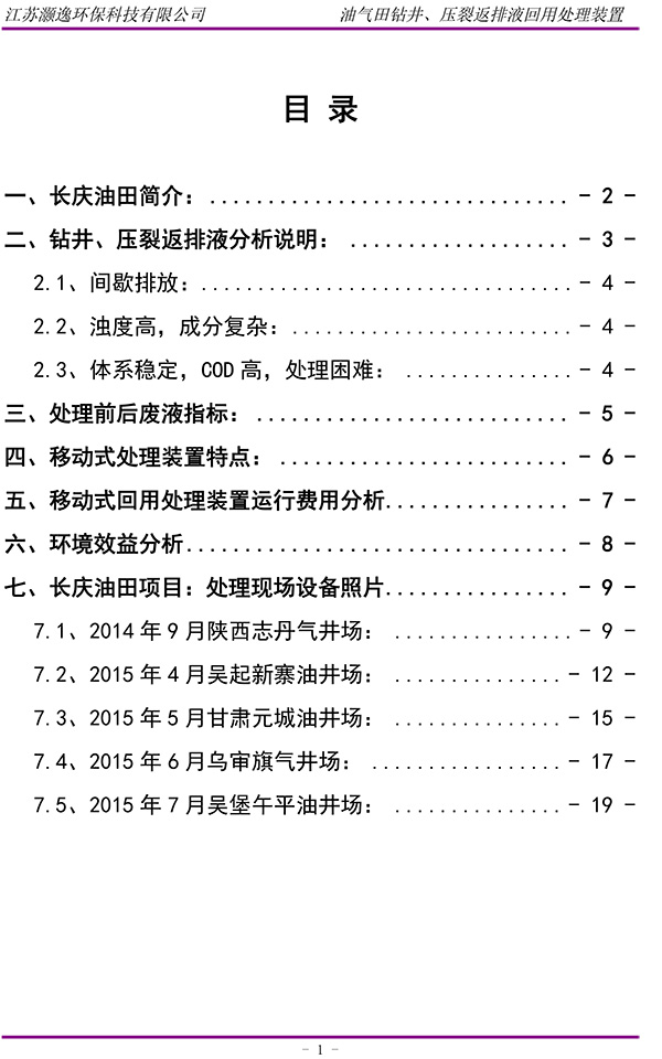 油气田钻井压裂返排液回用处理装置说明书