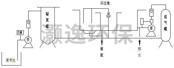 浅层气浮装置在一定压力下将空气溶解于水,制备成溶气水。然后通过释放系统将溶解在水中的过量空气转化成数量众多的微气泡。含有众多微气泡的溶气水在浅层高效旋流浮选池中与废水混合,微气泡与悬浮颗料相互吸附,凝聚并浮至水面。在浅层高效旋流浮选池内设置了旋转布水和集水器,使混合污水在水平流速基本处于零速状态,从而控制了池内的紊流现象,提高了分离效果。浮渣采用回转撇渣器将浮渣刮除,比重较大的颗料沉降于池底,由刮泥板刮于排泥槽内排出。废水中的胶体悬浮物应投加凝聚剂,使胶体悬浮物发生凝聚反应,形成颗料粗大的絮体。这些絮体与微气泡相互粘附上浮而分离出来。